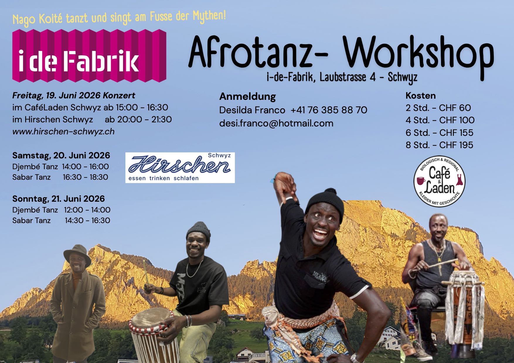 Sei dabei beim rhythmischen Auftakt in dieses lüpfige Afrotanzwochende im Café-Garten. Wenn ihr möchtet, dürft ihr gerne etwas in die Kollekte geben. Sonst einfach und unkompliziert vorbeikommen. Bis bald beim Tanzbein schwingen oder Zugucken:)